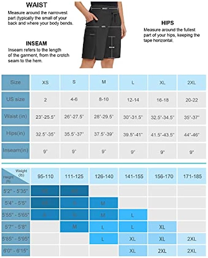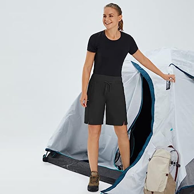 BALEAF Women’s Hiking Long Shorts 9" Quick Dry Bermuda Cargo for Curvy Lightweight Knee Length Shorts w Pockets